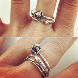 Artisan made ouroboros rings are available in recycled sterling silver or ancient bronze. Hand-carved rings, they are delicate and strong, perfect everyday, alone or stacked.