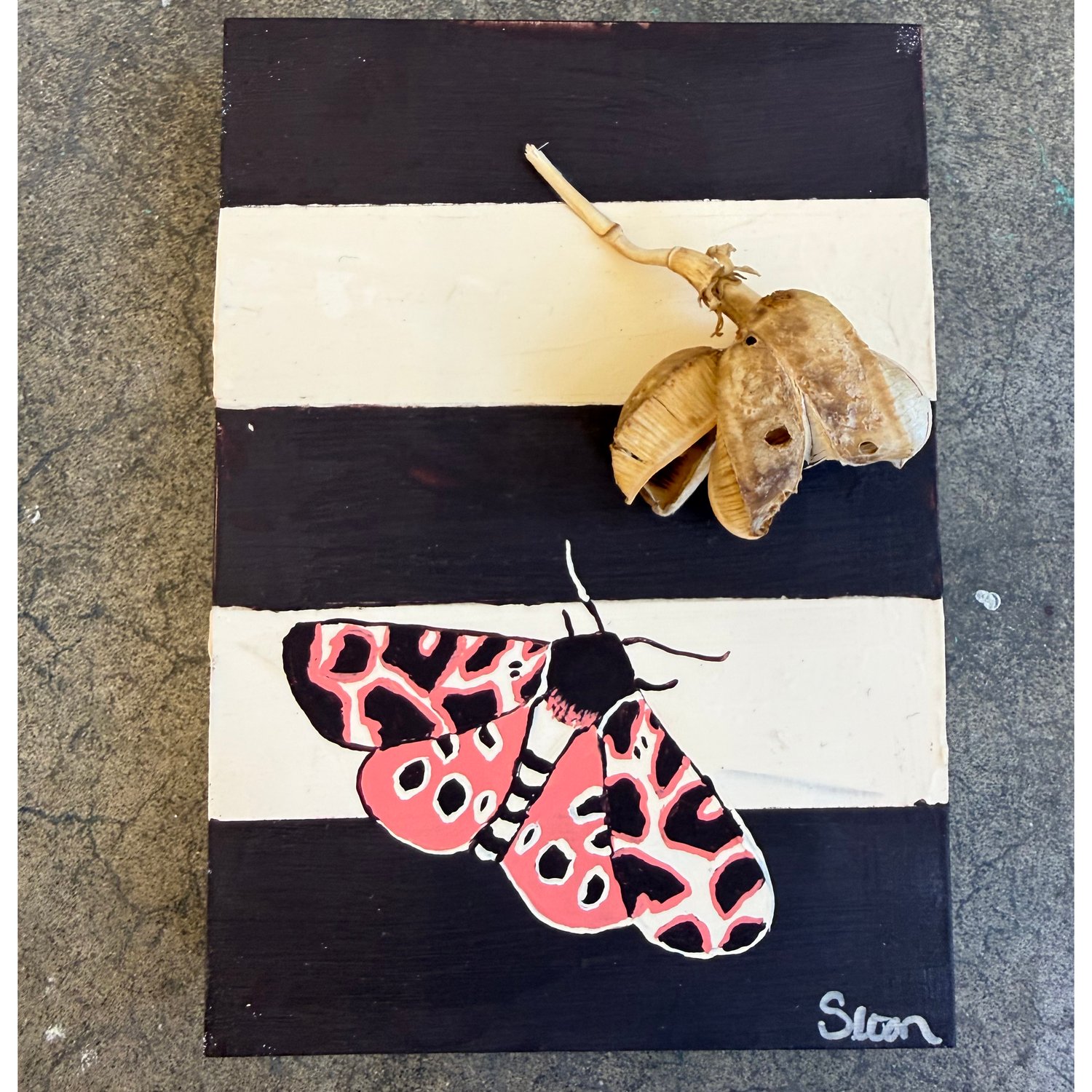 Acrylic and dried yucca bloom